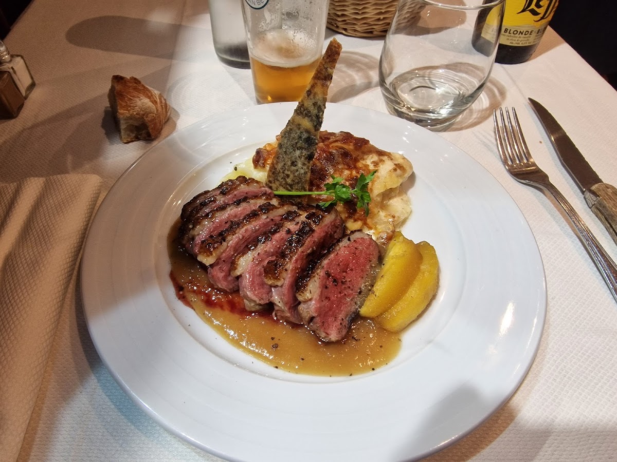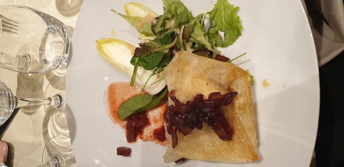 Excellent traditional French dinner. The service was friendly, welcoming and was very helpful. Great selection of wines by the glass and half-bottles, so I could enjoy a glass of cider from Brittany with my appetiser and powerful Rhone with my steak! The food was very tasty and steak cooked perfectly. The red beet sauce with my goat cheese Wanton was exceptional. Highly recommended.