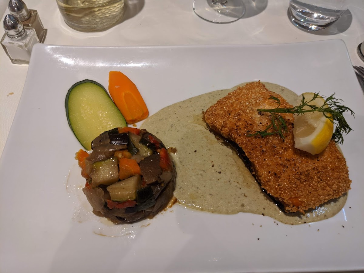 Quaint place for dinner. I got the goat cheese appetizer, salmon entree, and chocolate cake for dessert. I am scared of goat cheese, but it was so fried I actually enjoyed it in this appetizer. The salmon was also cooked nicely and I loved that it was sesame crusted. The side vegetables were fine, but could've used some more flavor. They just tasted like cooked vegetables. The dessert was a standard chocolate lava cake. I enjoyed all three meals. My friend got duck for the appetizer and entree was not a big fan.